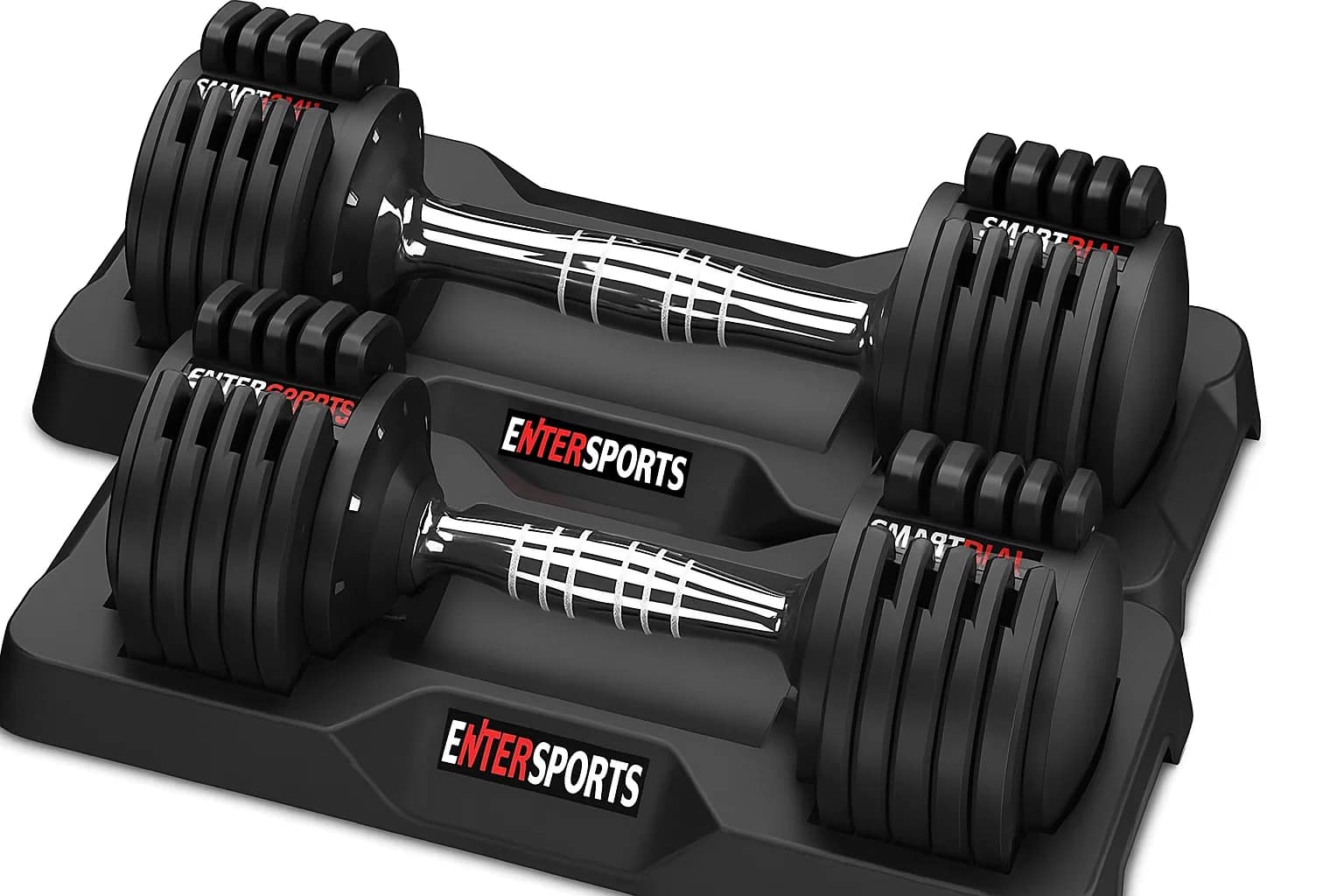 Les haltères réglables EnterSports 2–27 kg s’adressent aux pratiquants qui souhaitent s’équiper sérieusement à domicile sans investir dans un rack complet. Leur système de réglage offre 10 niveaux de charge, permettant de remplacer une dizaine de paires d’haltères tout en conservant un encombrement réduit.