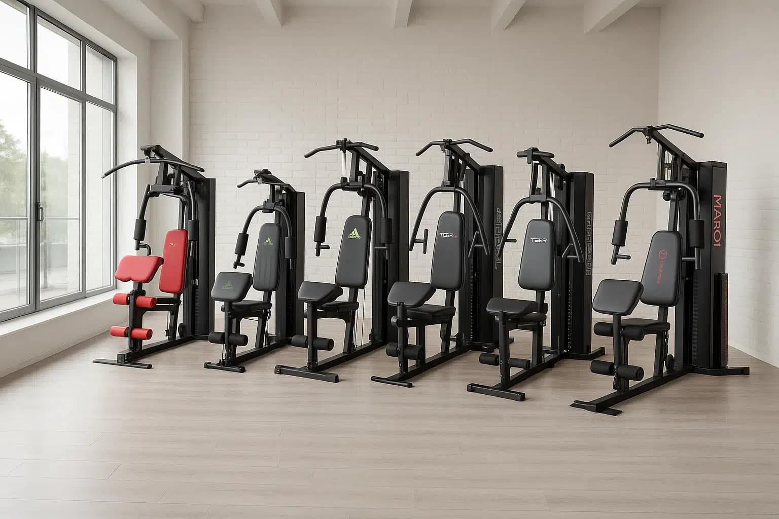 Sportstech HGX200, Adidas Home Gym, BH Fitness Global Gym Plus G152B, TOORX MSX-90 et Marcy Eclipse HG3000.