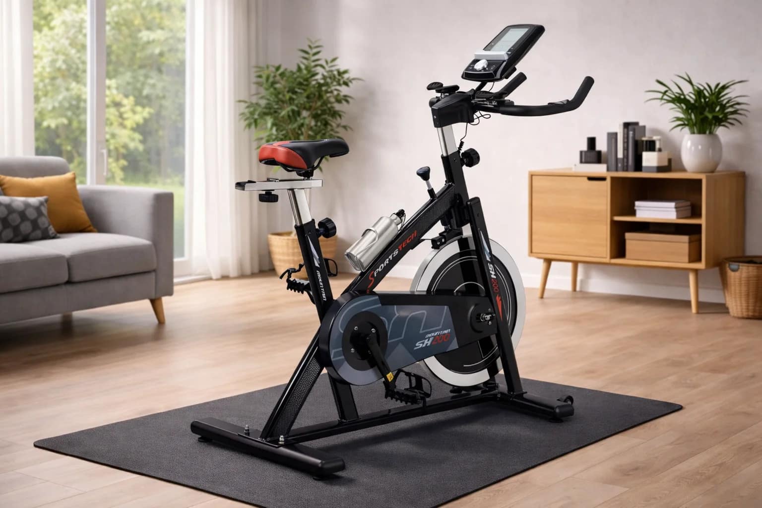 Le Sportstech SX200 n’a pas été conçu pour faire semblant. Il n’essaie pas de se présenter comme un vélo d’appartement universel, capable de convenir à tout le monde sans distinction. Son identité est plus nette que cela. Il s’adresse d’abord à celles et ceux qui veulent retrouver à domicile une sensation de pédalage plus dense, plus directe, plus proche du biking indoor que du simple cardio de confort.
